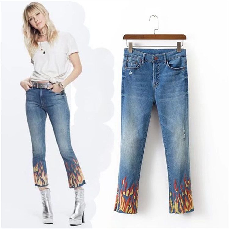 2019 2018 Fashion Casual Ladies Vintage Fashion Flame Printed