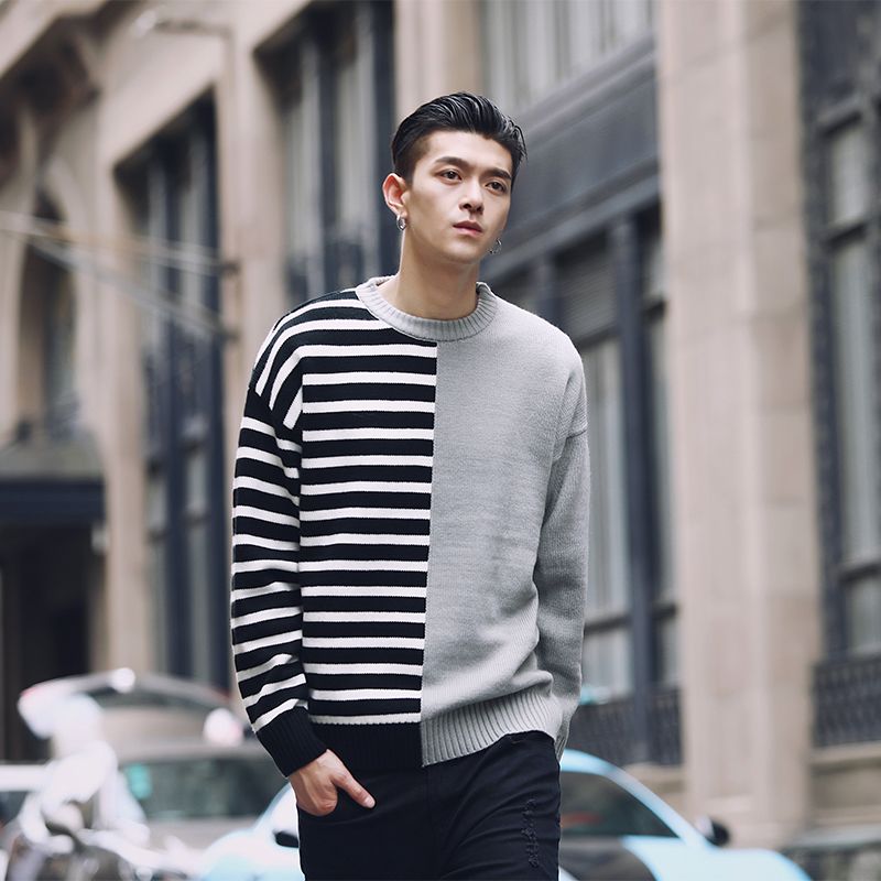 2019 Patchworker Pullover Sweater Men Stripe And Solid Korean Men