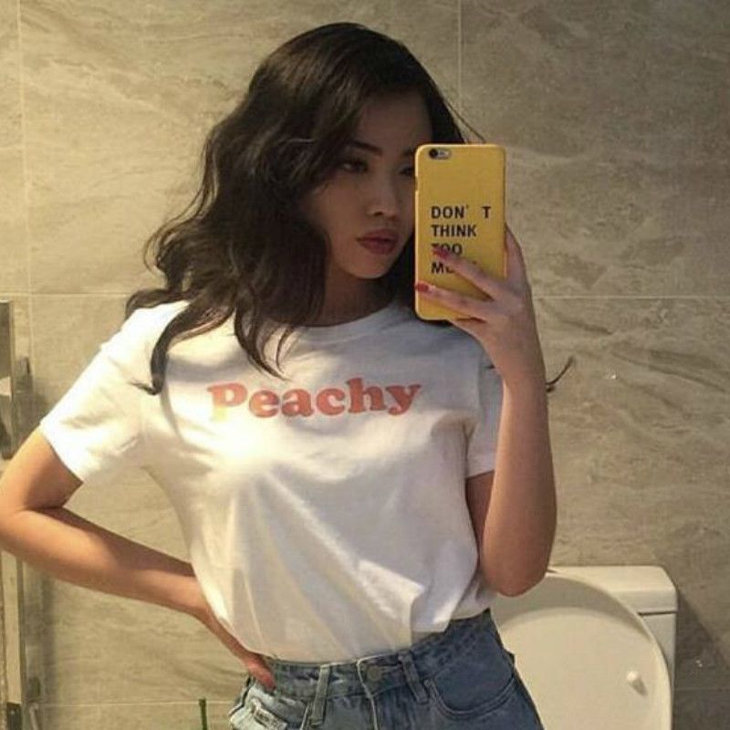 2019 Peachy Red Letters Print T Shirt Fashion Cotton Clothing Tumblr