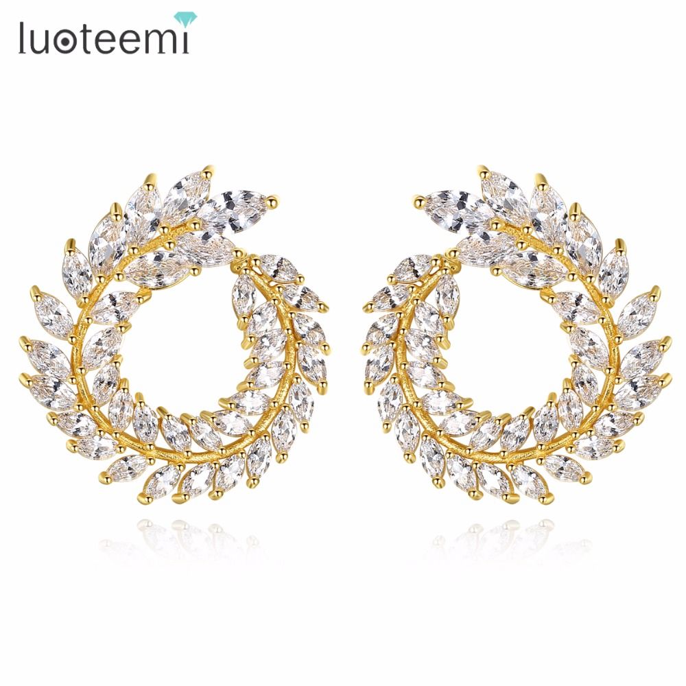 Wholesale Sparkly Clear Leaf Shape Stud Earrings With Top Quality