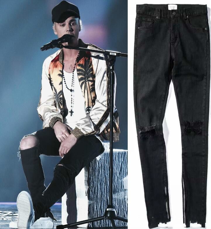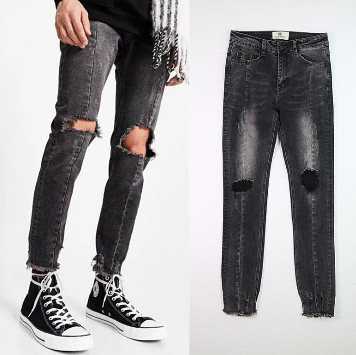 2019 New Hot Fashion Zippers Skinny Slim Fit Mens Distressed Black