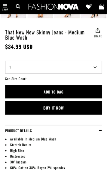 It goes to a page with a description of that item and a size selection. All fashion nova models are wearing size small in tops and dresses and size 1 3 or 5 in jeans depending on their body type. Most fashion nova jeans dresses have great stretch please refer to product description for fabric details.