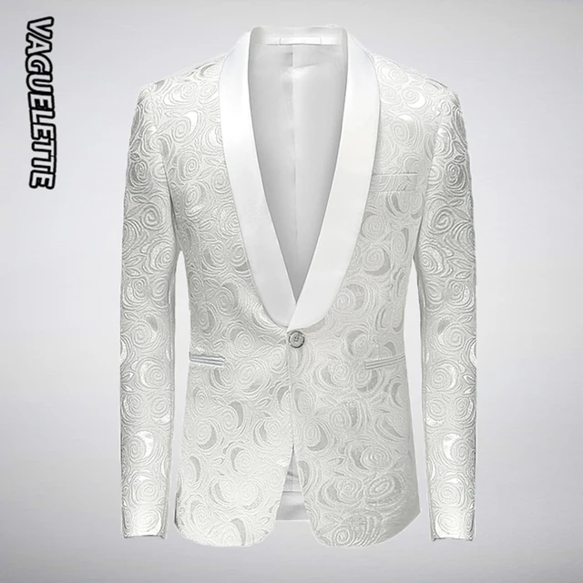 White Embroidered Rose Floral Tuxedos Blazer Men Wedding Dresses