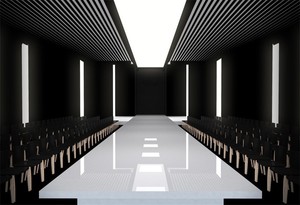 White Lights Lit Up The Mirrored Runway And Backdrop During The