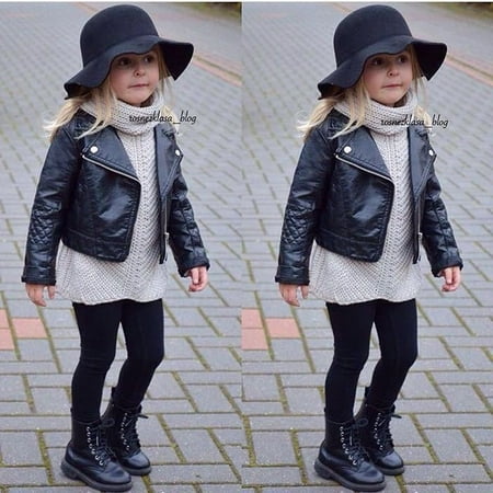 Emmababy Fashion Kids Girls Motorcycle Biker Short Jacket Lapel Pu